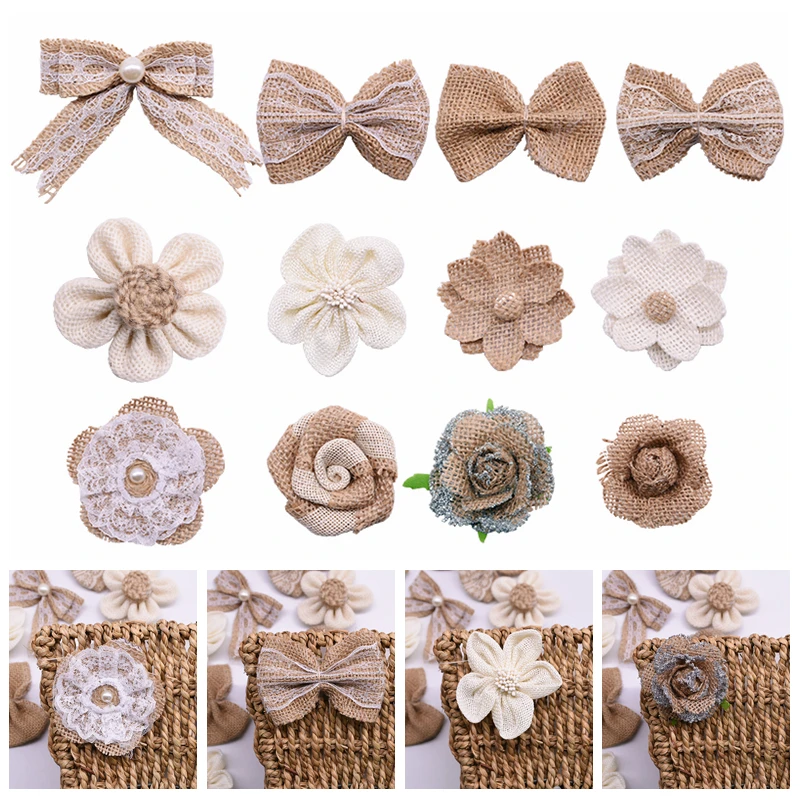 5 шт./лот винтажная джутовая лента из мешковины с бантом цветок для свадьбы рождественской вечеринки DIY ремесло украшения джутовые товары для цветов