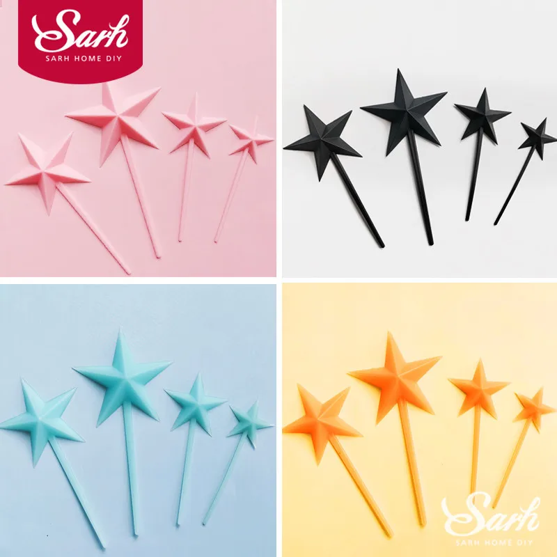 Розовый, желтый, черный, синий, звезды, украшения для торта, украшения на день рождения, для свадьбы, День Святого Валентина, вечерние принадл...