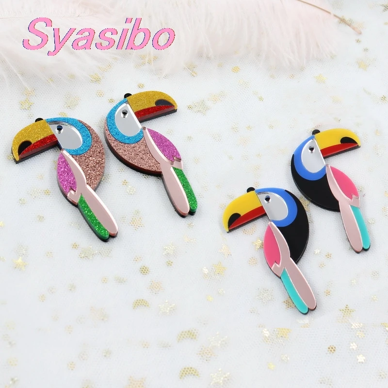 70 мм акриловые серьги в виде птиц винтажные птицы Тукан Висячие серьги Высокое качество акриловый блеск Лазерная Cutout-HP009