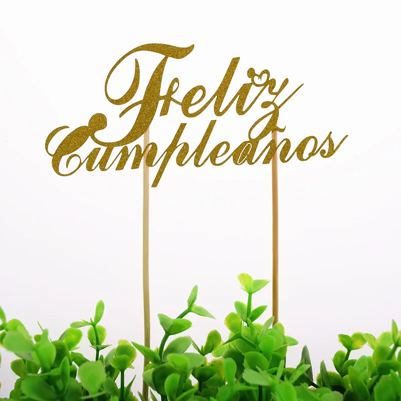 Торт флаг Espanol DIY Spainish Feliz Cumpleanos торт Топпер С Днем Рождения Блестящий золотистый Серебристый вечерние пирожные для выпечки
