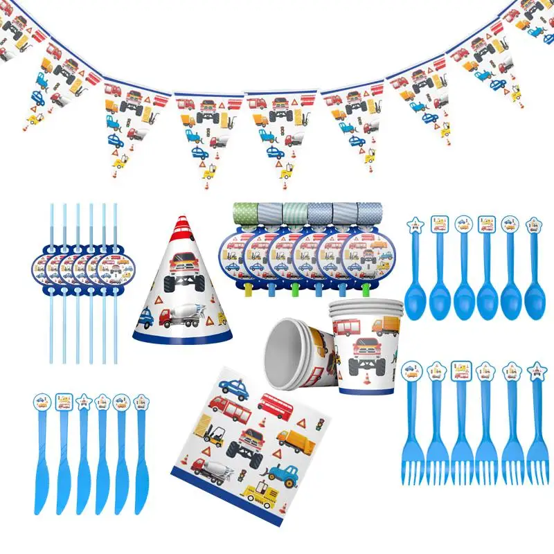 С рисунком из мультфильма «Тачки» вечерние одноразовая посуда тарелка Салфетка скатерть чашки строительная техника ко дню рождения украше...