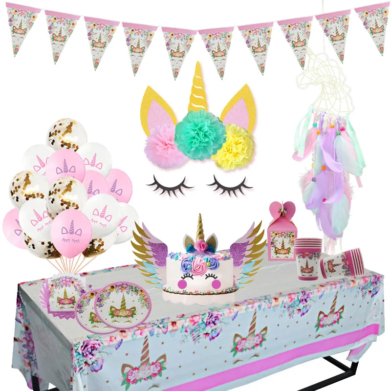 День рождения украшения Дети одноразовые посуда бумажные тарелки чашки детские салфетки Декор Единорог день рождения поставки