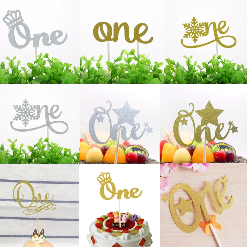 Один с бантом Снежинка звезда Торт Топперы с днем рождения цвета: золотистый, серебристый бумага доска торт флаг день рождения материалы дл...
