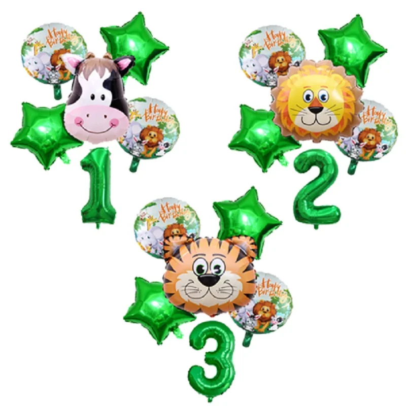 6 шт./лот, декор для дня рождения для детей, воздушный шар в джунглях, сафари на тему зоопарка, тигр, Лев, корова, обезьяна, Зебра, жираф, баллон