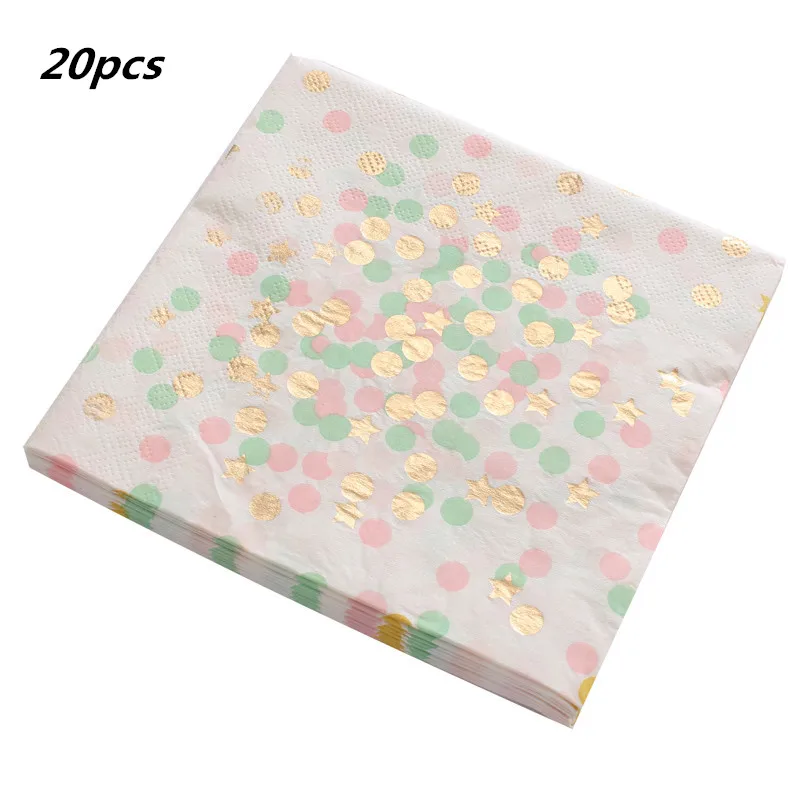 20 шт./партия Золотая фольга в горошек бумажная салфетка тарелка чашки для мальчиков и девочек пол раскрывает вечерние тканевые украшение дл...