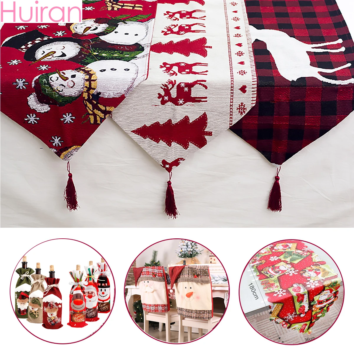 Huiran белье Рождество Лось снеговик Настольный бегун Merry рождественские украшения стола для дома 2019 рождественские украшения новый год 2020