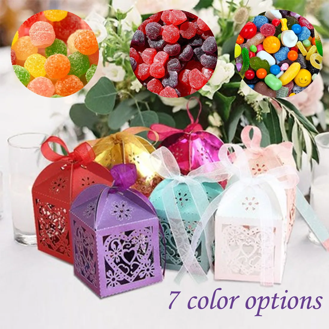 50 шт./лот выдалбливают Любовь Сердце Лазерная резка бумажные коробки конфет фиолетовый бежевый белый розовый Подарочный пакет Свадебные детские Душ Вечерние