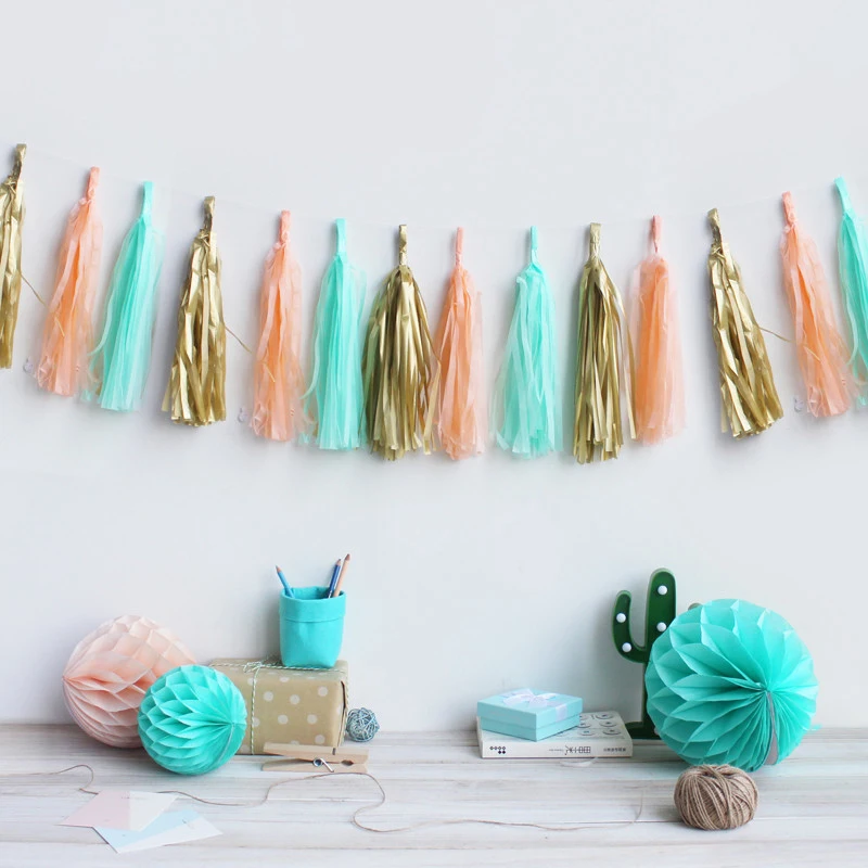 5 шт./пакет, 14 дюймов, для детского душа, тканевая бумага, кисточка, для дня рождения, гирлянда, украшение для вечеринки, для свадьбы, события, дня рождения, вечеринки