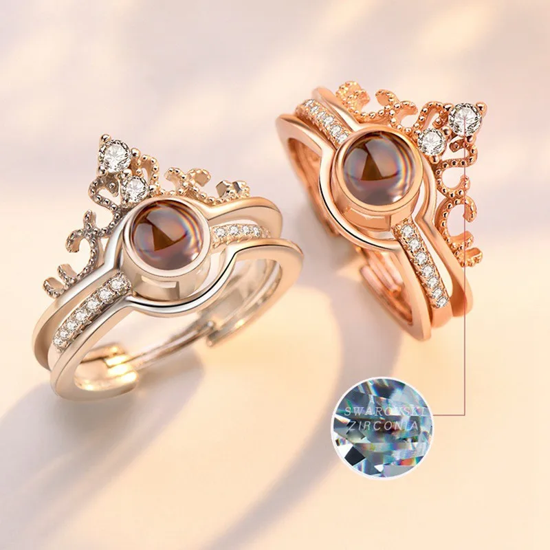 100 язык I love you модное блестящее Кристальное украшение красивое регулируемое кольцо с бриллиантом для обещания свадьбы