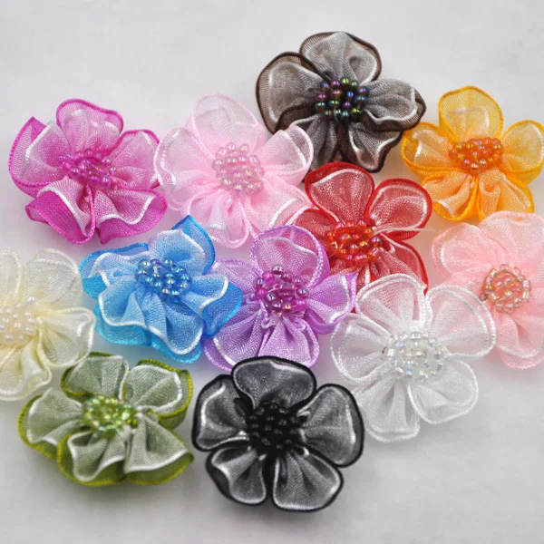 Upick 20 шт. органза Цветы на лентах W/шарики аппликация ручной работы к свадьбе Dec A008