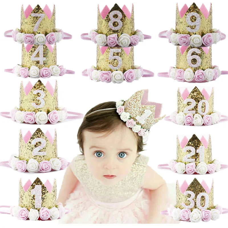 Для маленьких девочек Шляпы для вечеринки по случаю Дня рождения детей 1 2 3 4 5 6 7 8 9 лет День рождения Принцесса Корона Кепки вечерние украшен...