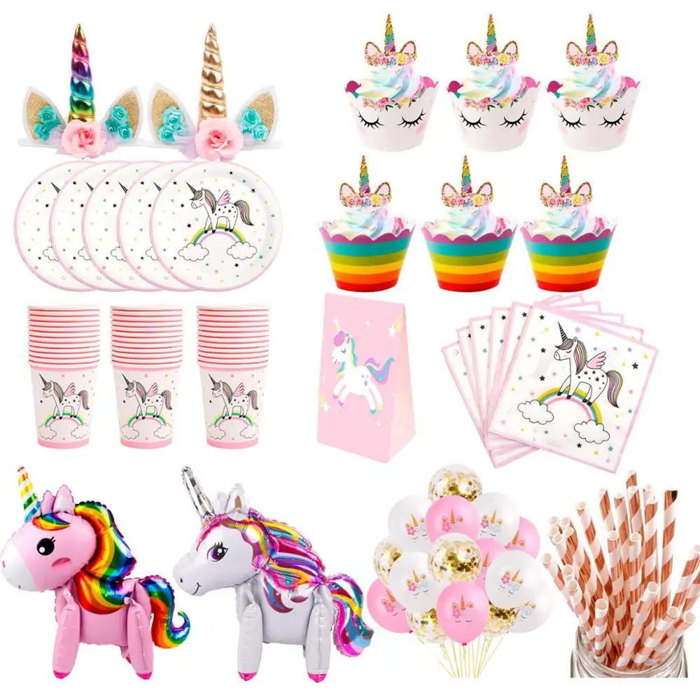 QIFU Baby Shower Единорог Декор Единорог вечерние украшения розовая девушка Единорог вечерние поставки Единорог День Рождения украшения,