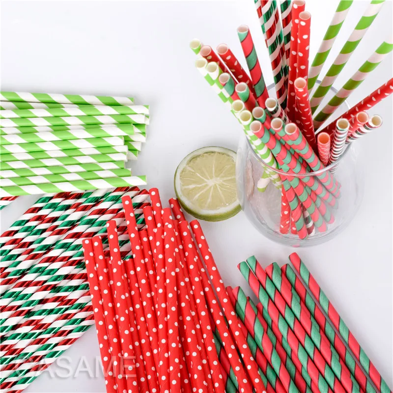 Оптовая продажа Рождество одноразовый питьевой бумага соломинки в полоску соломы Детские Свадебные душ украшения вечерние подарок партии ...