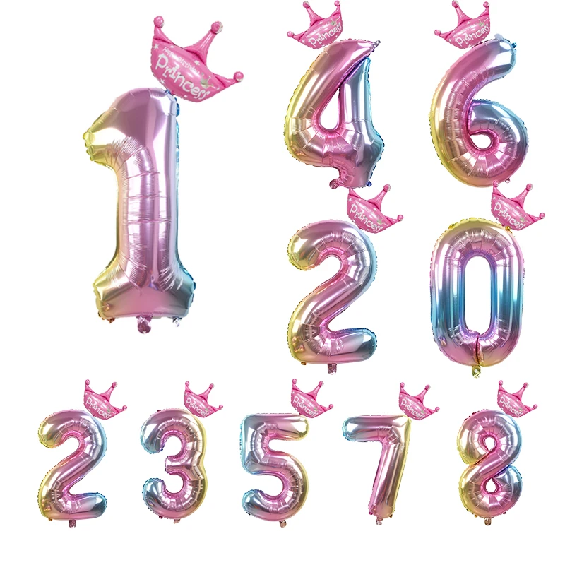 2 шт. Радужная Корона 32 дюйма воздушные шары из фольги в виде цифр Дети День рождения украшения гелий номер шар события ребенок душ Декор