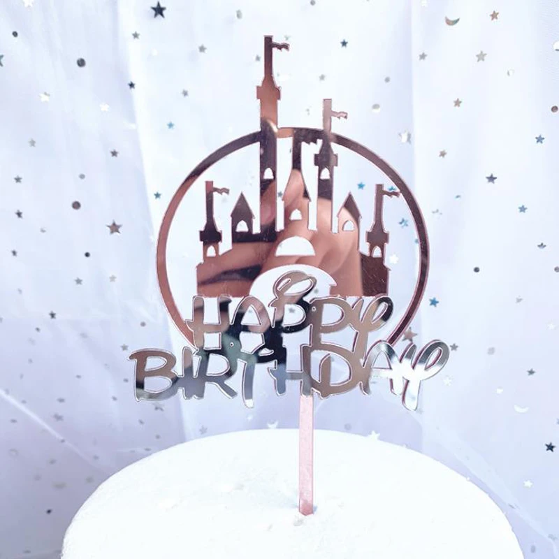 1 шт. милые с днем рождения акриловые топперы для торта серебряный розовый замок кекс Топпер Для детей день рождения украшения для торта для ...