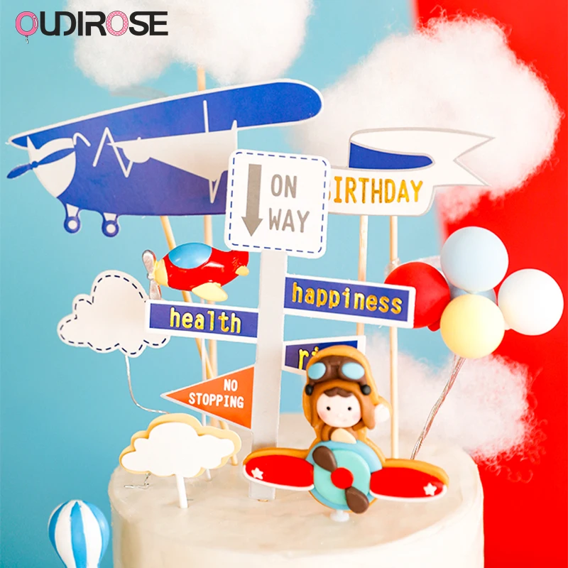 Украшения для торта в виде самолета для мальчиков с рисунком облаков, самолетов, дня рождения, кексов, Детские вечерние украшения для выпечки