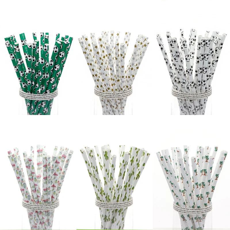25 шт/много День рождения украшения Дети одноразовые бумажные футбол Фламинго кактус кокосовое дерево соломы для украшения свадьбы