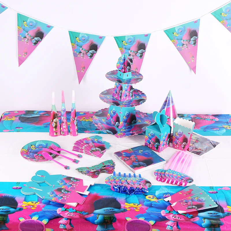 С рисунком «тролли» партия одноразовых Посуда тарелку салфетками баннер пригласительных билетов день рождения коробка конфет Baby Shower парти...
