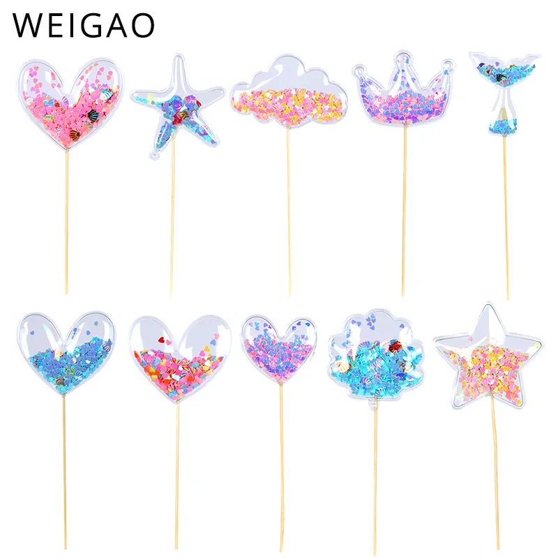 Блестящий ПВХ Топпер для торта в форме сердца, звезды, облака, блестящий Топпер для кекса на свадьбу, день рождения, вечеринку, украшения тор...