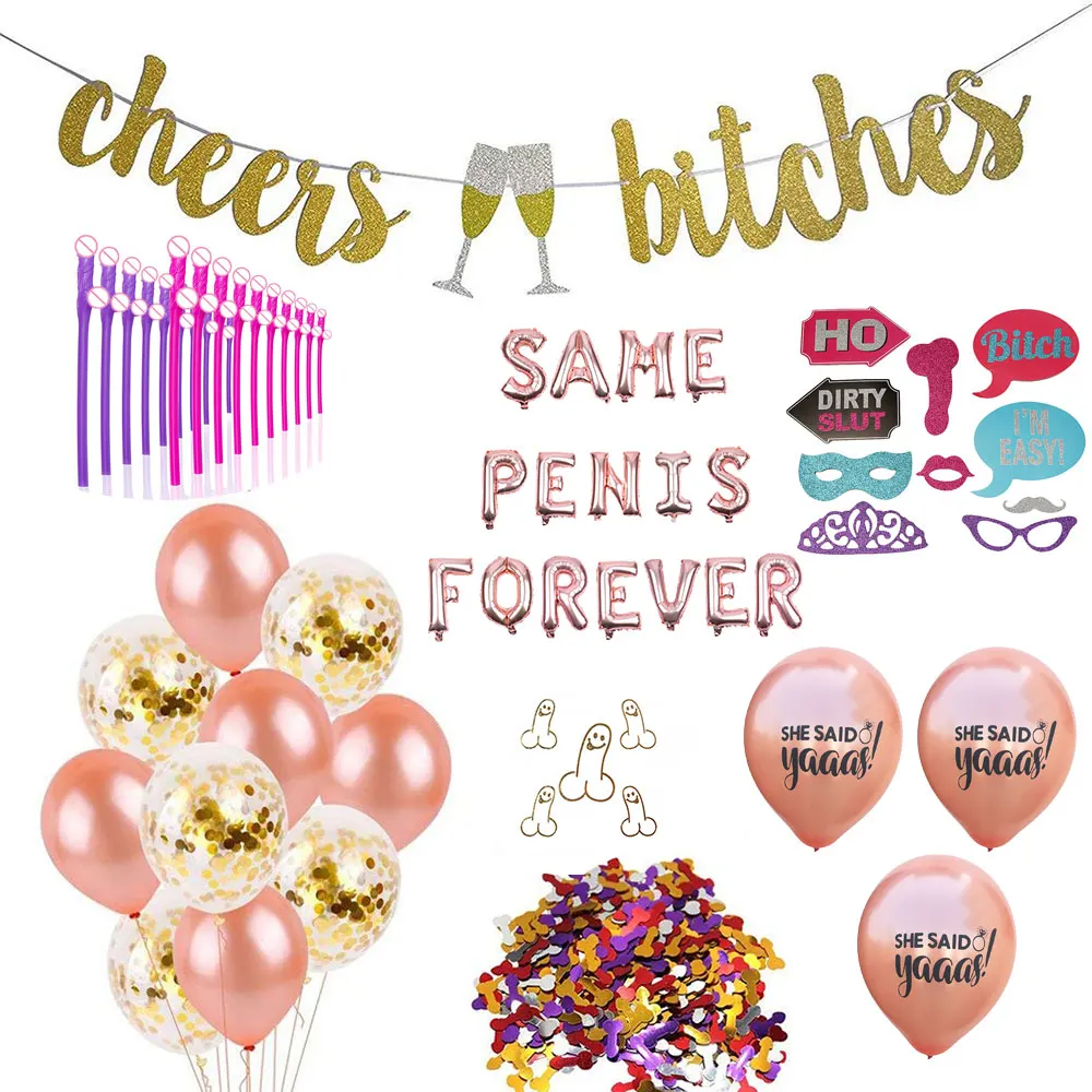 ZLJQ шт. 10 шт. розовое золото Команда Невесты быть воздушные шары смешной, грубый Вилли пенис соломы свадебный душ Свадебные девичник украшени...