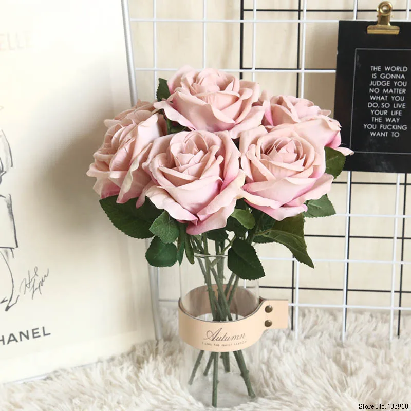 30 см короткие большие искусственные розы ветки Цветы Свадебные украшения для дома фланелевая ткань милые розовые Искусственные цветы вечерние украшения