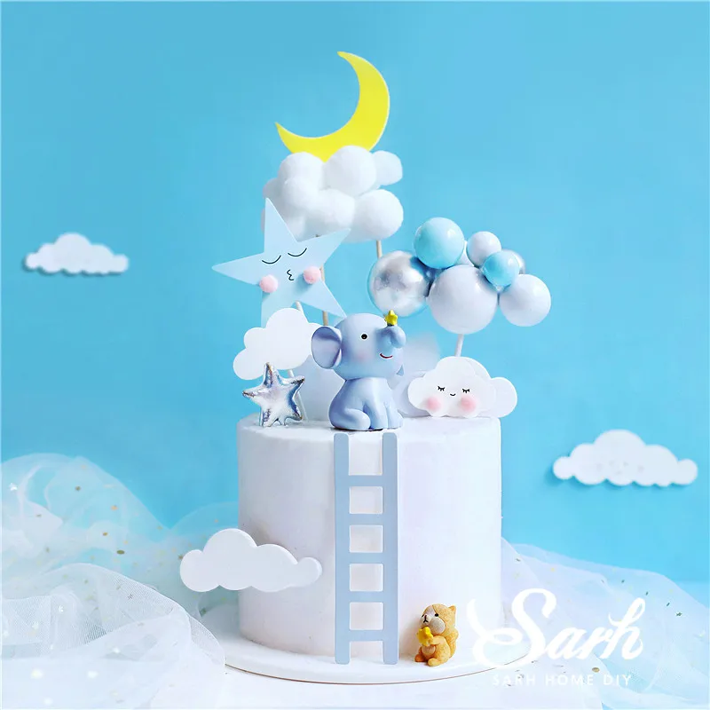 Луна слон звезда белка торт Топпер для детского душа выпечки Десерт украшение на день рождения Юбилей поставки ребенок сладкий подарки