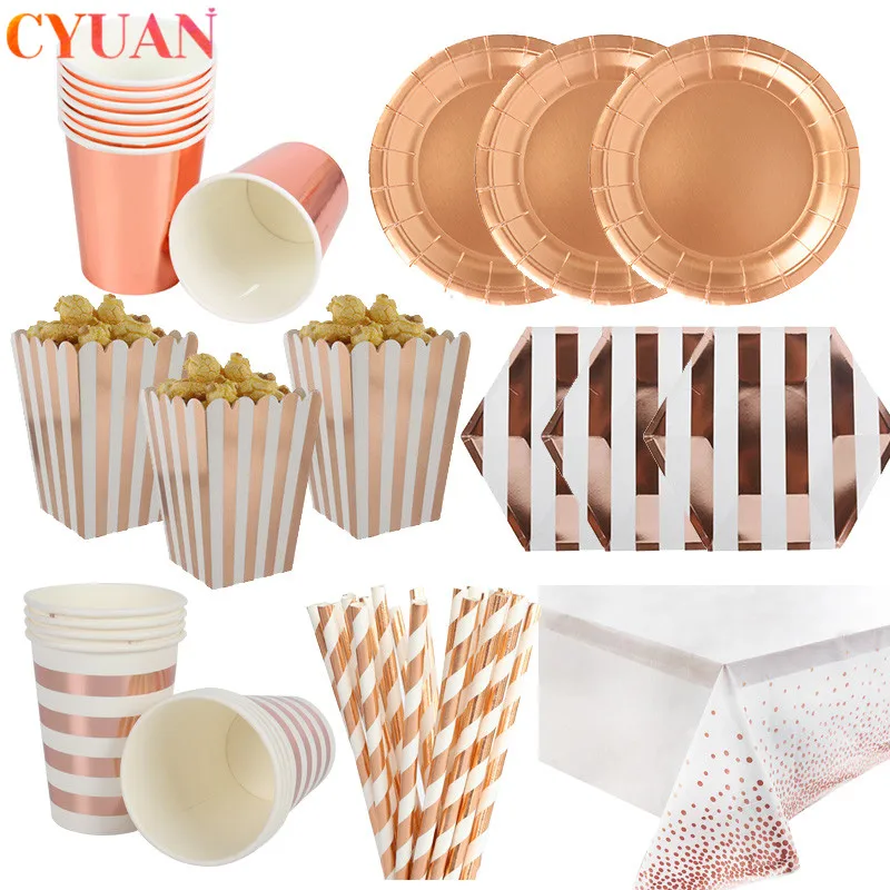 Розовый Золотой Декор вечерние одноразовые столовые приборы бокалы для шампанского пластины соломинки Свадебный декор для вечеринки день ...