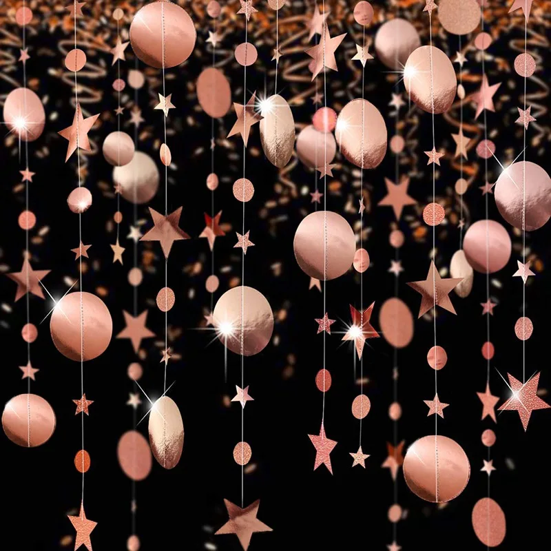 4 м Звезда розового золота Круглые гирлянды зеркальный бумажный баннер для дня рождения Декорации на свадьбу, реквизит на вечеринку DIY домашний Настенный декор