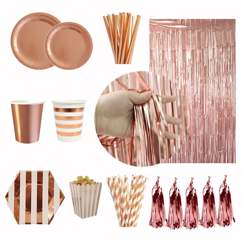 Принадлежности для вечерние из розового золота, одноразовая посуда, чашки, тарелки, соломинки, девивечерние, вечеринка, невеста, день рождения, украшение