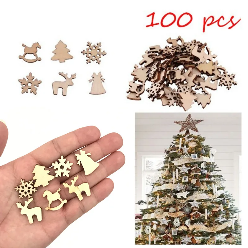 100 шт. натурального дерева DIY елочные украшения висит украшения кулон подарки хлопья снега рождественские украшения для дома