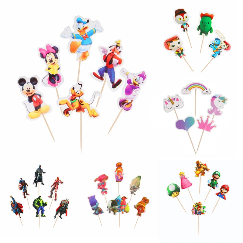 24 шт мультфильм украшение для торта на день рождения на тему "Лошадки карусели" торт Топпер Микки/единорог/Человек-паук/Миньоны/Принцесса/ру...