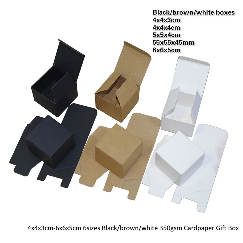 100 шт. 4x4x3cm-6x6x5cm 6 размеров черный/коричневый/белый 350gsm Cardpaper подарочной коробке Diy Comestic бутылки упаковки пасхальные Свадебные сувениры