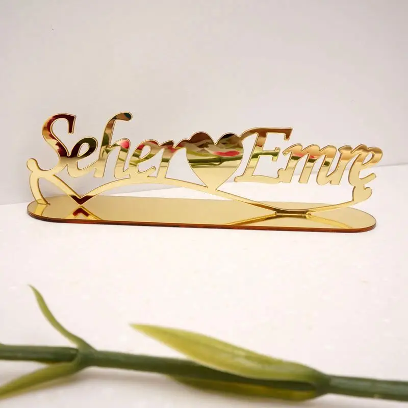 Персонализированные Имя Зеркало TableShow с подставкой пластина пользовательские акрил украшение свадебного стола сердце любовь вечерние сув...