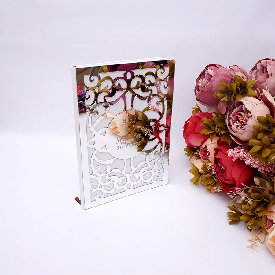 Пользовательские Свадебная книга для подписей посетителей белый пустых страниц персонализированные выдалбливают проверьте в книгах вече...