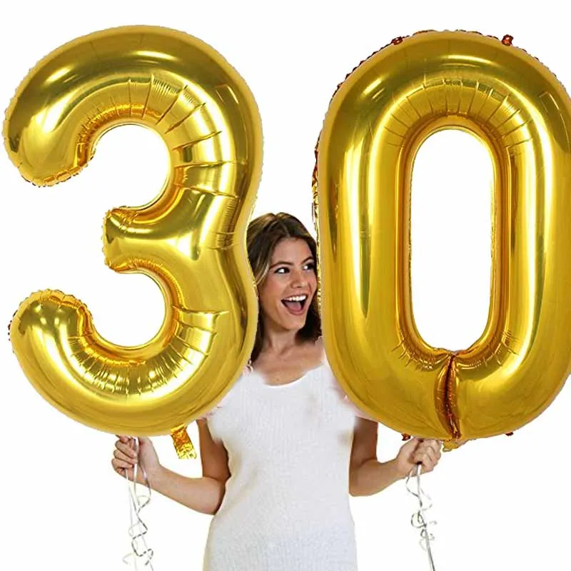 40 дюймов большое количество воздушные Цифры 10 20 30 40 50 60 70 80 90 лет и взрослых на день рождения Юбилей украшения поставки золото серебро