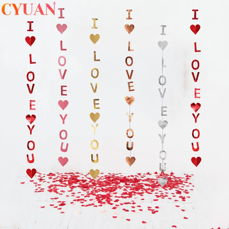 I LOVE YOU бумажные гирлянды Баннер Висячие струнные губка в форме сердца конфетти Валентина вечерние принадлежности свадебные украшения стол...