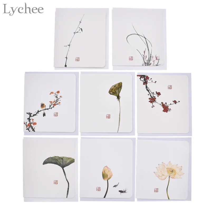 Личи 10 шт. классический китайский цветок открытки с конвертом карты приветственное сообщение на день рождения Свадебная вечеринка Приглас...