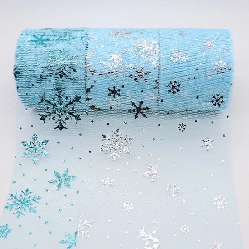 25 ярдов/рулон 6 см ширина Снежинка фольга тюль рулон органзы Baby Shower вечерние принадлежности DIY банты для волос ручной работы материалы