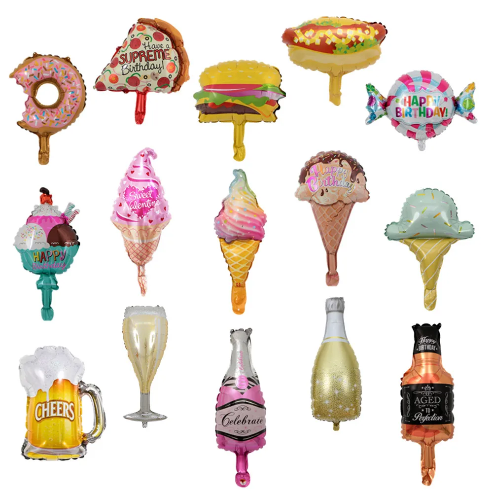 50 шт./лот мини Champagne Gold бутылки мороженое, пицца пончик гамбургер чашки виски Фольга шары День рождения Декор