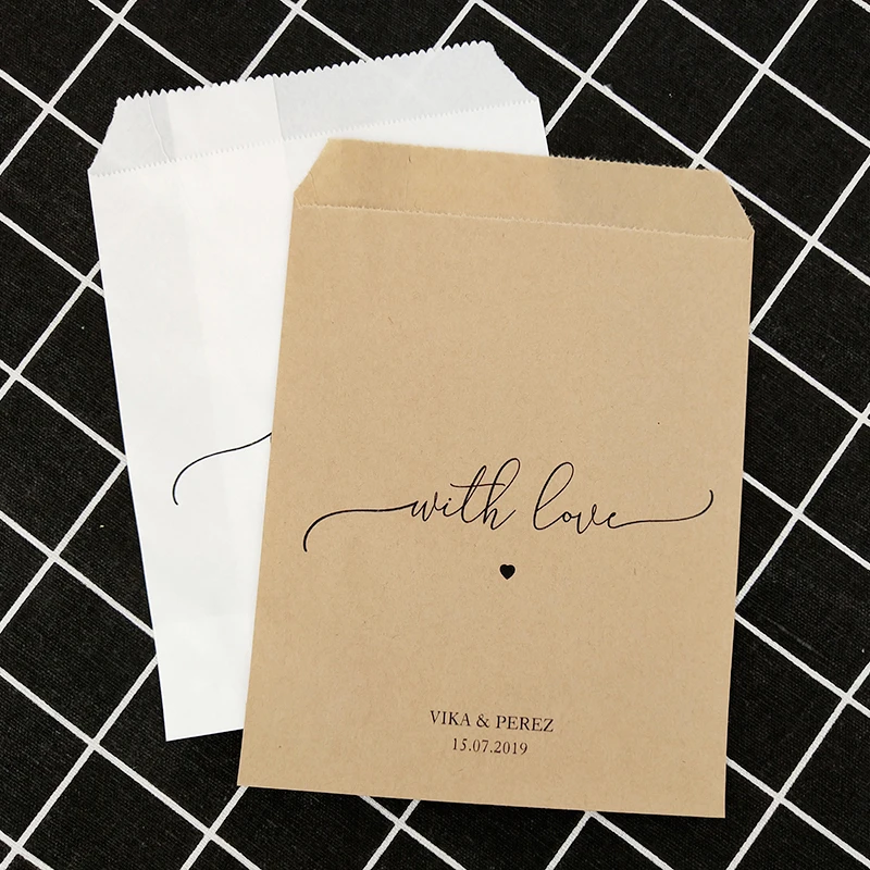 Индивидуальное персональное имя, дата, бумажная Свадебная помолвка любимый мешок "с любовью" конфеты, печенье, пакеты для попкорна белый или...
