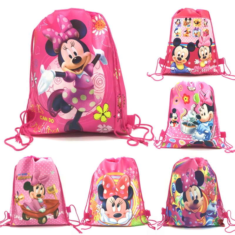 1 шт Минни Мышь вечерние шнурок для девочек Школьный рюкзак, рюкзак для путешествий ребенок день рождения, детский душ нетканый мешок постав...