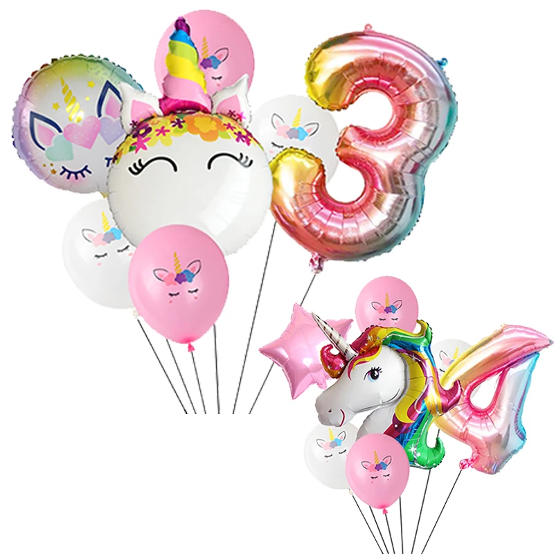 7 шт./лот Единорог шар Радуга градиент 32 дюйма номер 1 2 3 4 5 Дети День Рождения вечерние детские Душ Декор гелиевые шары