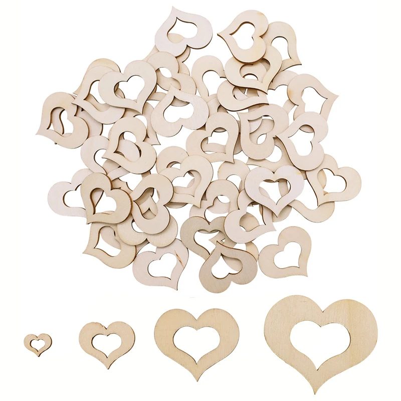 100/50pcs Mini Hollow Wooden Love Heart Table Scatter DIY Craft Accessories Rustic Wedding Party DIY Decor Favor Scrapbooking