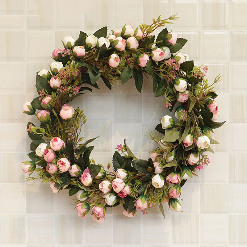Искусственные Розы Цветочный венок 30 см/40 см Шелковый Искусственный цветок Гирлянда для дома передней двери Свадебные настенные подвесные ...