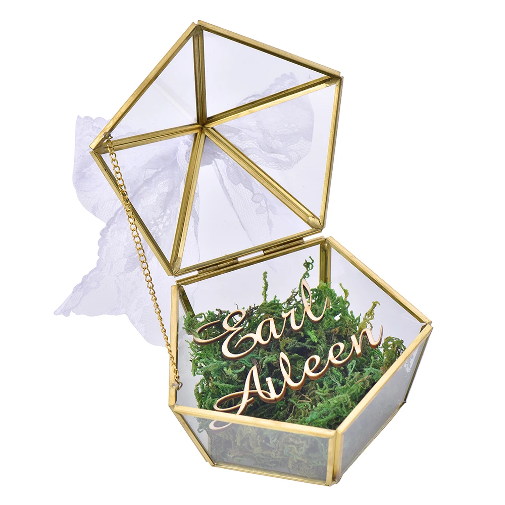 Оригинальное кольцо, коробка, выгравированное имя, свадебная стеклянная Подушечка для ювелирных украшений, Пентагон, геометрическое медно...