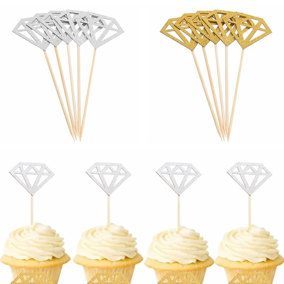 10/20/30 шт Серебристые золотистые блестящие в форме ромба украшения для капкейков для Одежда для свадьбы, дня рождения десерт, выпечка флаги Д...
