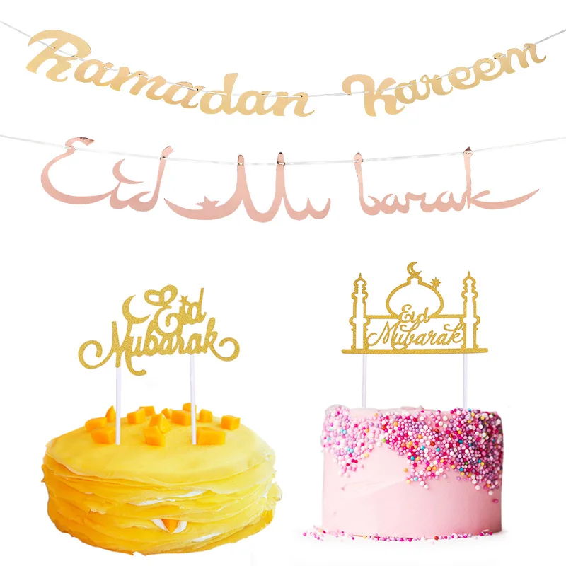 Мусульманский ислам хадж Рамадан вечерние украшения ИД Мубарак Рамадан Карим Бантинг Баннер гирлянда Золотой блестящий Топпер для торта в...