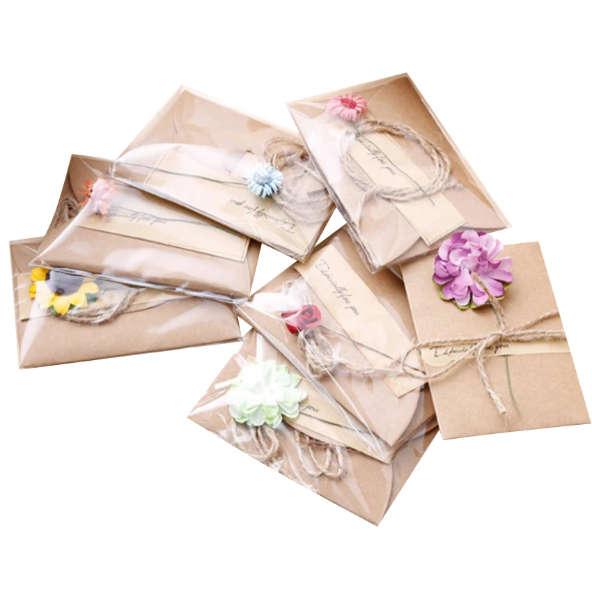 50 компл./лот Творческий крафт-сухой цветок открытки набор и конверт с веревкой студентов DIY для фестиваля пожелания подарки