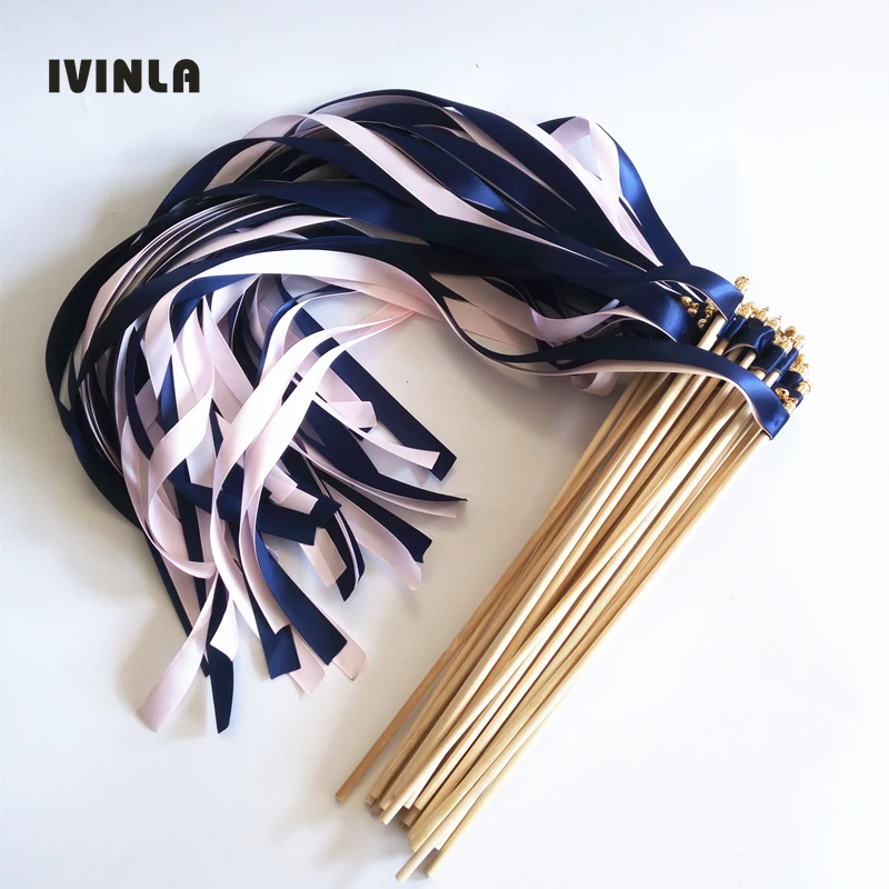 Бесплатная доставка (50 шт./лот) темно-синий + розовый пятен Ribbon жезлы Свадебный палочки для Свадебная вечеринка