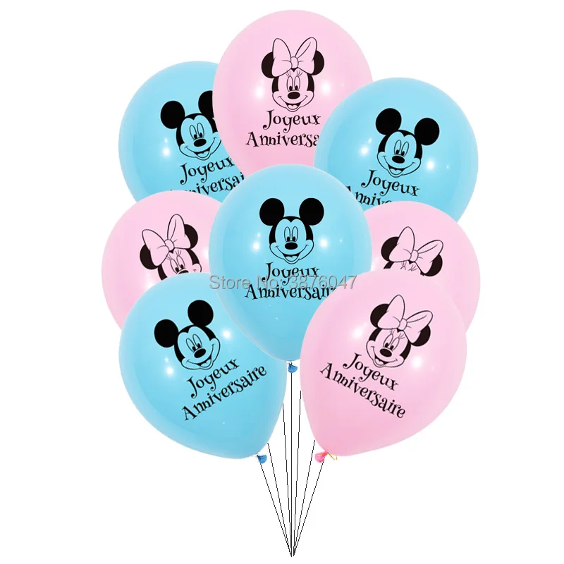12 шт./партия воздушные шары Joyeux anniversaire с рисунком Микки и Минни Маус, вечерние воздушные шары с украшением во французском стиле для детей на ...